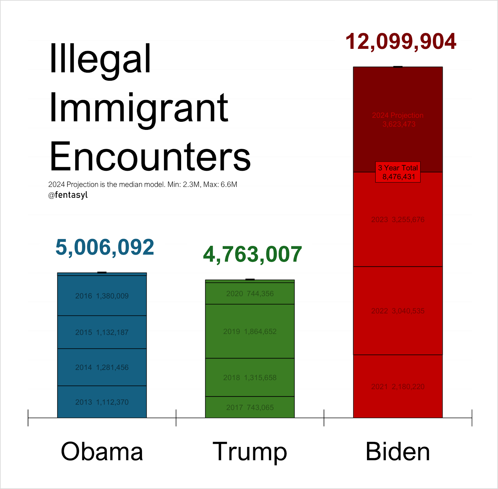 The final delusional assumption I want to address is that the leftist political establishment is trying in good faith to control our borders but has been thwarted by opportunistic populists who want to keep them open for partisan advantage. This assumption is both naïve and incorrect. The specific example he gives is about the US border bill, so let’s start with what Biden and Harris have actually done to the US border, which is to unleash the biggest surge in illegal immigration in American history by weakening enforcement and strengthening incentives for unauthorized entry: