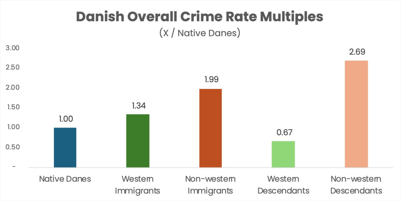Disturbingly, second-generation non-Western immigrants have a higher crime rate than their parents. By contrast, the descendants of Western immigrants have a lower crime rate than both their parents and the natives: