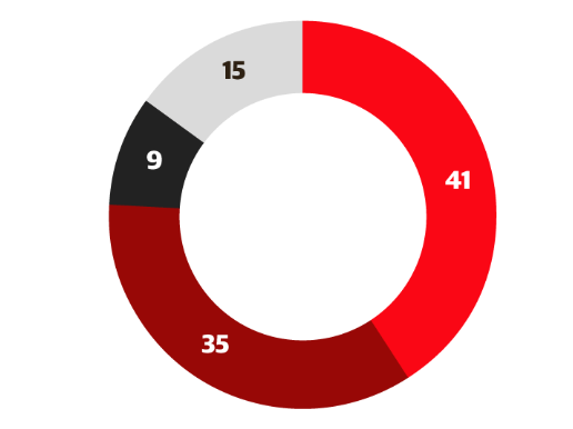 In addition to soaring grenade attacks, Sweden has also seen the biggest increase in fatal shootings in Europe since 2015, leaping from one of the lowest rates of gun violence on the Continent to one of the highest in under a decade. An investigation showed that only 15% of that gun crime is committed by ethnic Swedes (shown in gray below), whereas 41% of it is committed by those who are foreign born (bright red), 35% by those who are native born to two foreign parents (dark red), and another 9% to the domestic born with one foreign-born parent (black). Of those foreign-born perpetrators, 62% come from the Middle East or the Horn of Africa.