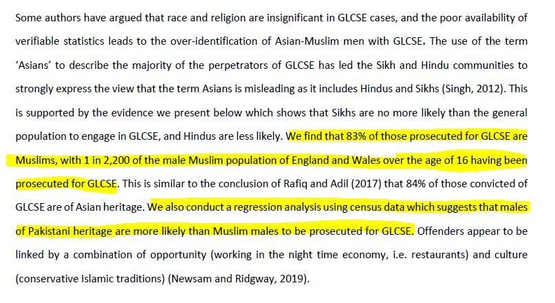 Perhaps most strikingly, immigrant populations also disproportionately sexually exploit girls in grooming gangs. Research revealed that, between 1997–2017, 83% of group child sexual exploitation (CSE) prosecutions were of suspects of Muslim descent. Given their population share during this period ranged from about 3% to 6%, this means that British Muslims were extremely over-represented compared to non-Muslims for group CSE: